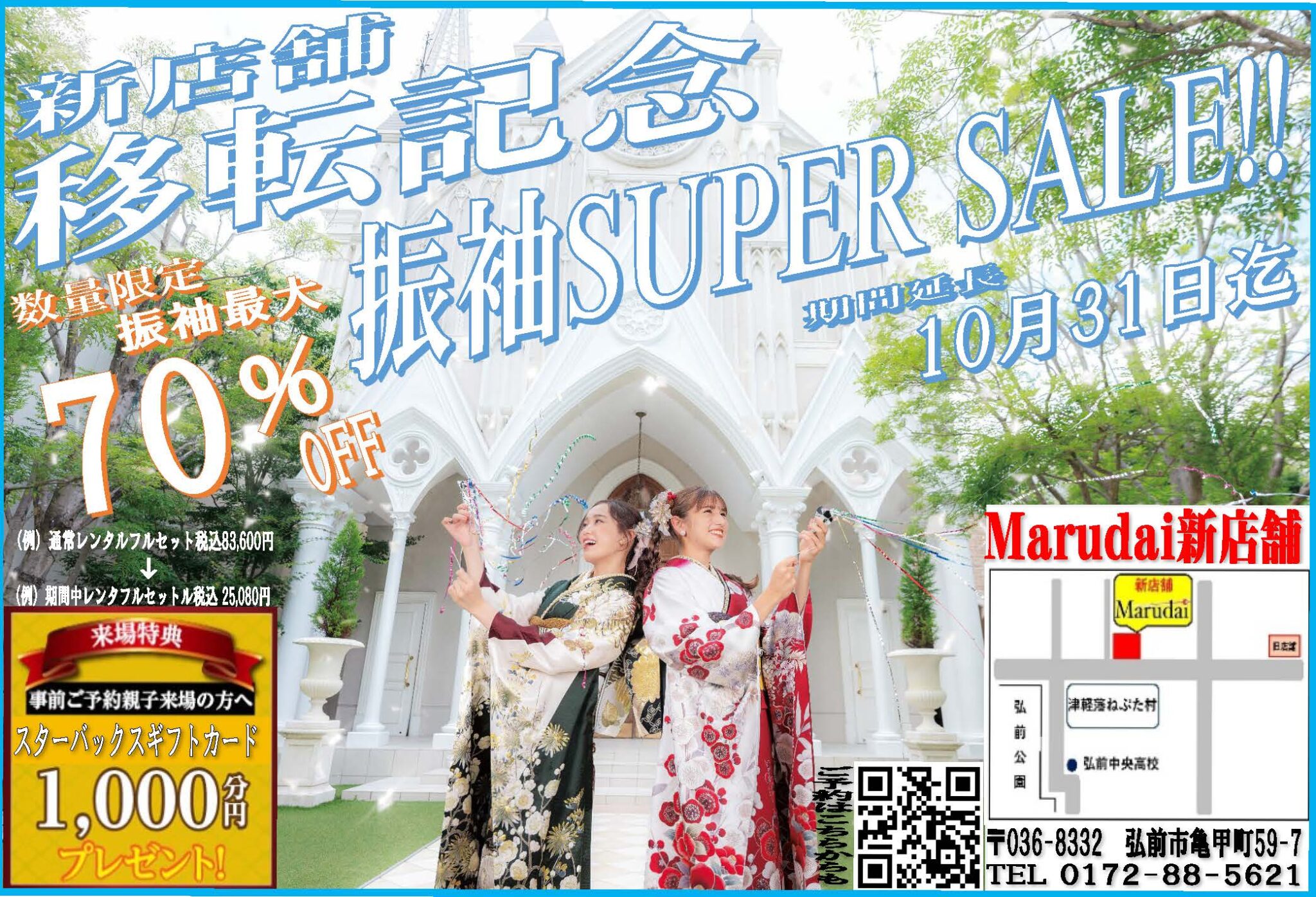 新店舗移転記念 振袖SUPER SALEを期間延長して10月31日まで開催します! 数量限定振袖最大70%オフになります! 人気の柄は早いもの勝ちになります!お仕度時間も優先確保(^^)/ 2027年に成人式...